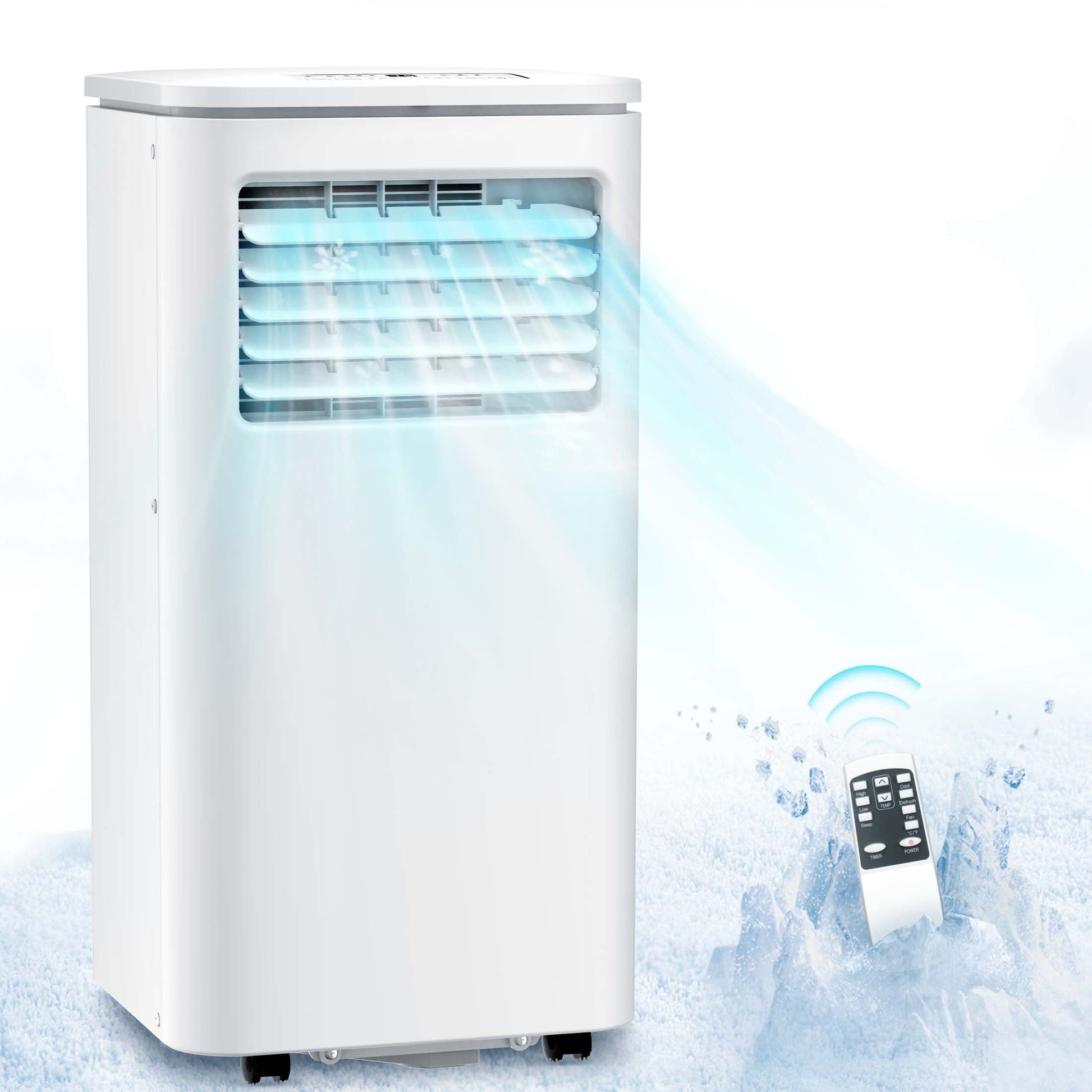 - 🧊【EASY TO INSTALL & MOVE】Just roll this portable air conditioner with wheels into any room with a double hung or sliding window. Attach the included hose & window adapter plug it into an outlet. Move the free standing air conditioner from room-to-room with four easy mobility caster wheels. Perfect for single room cooling including bedroom apartment college dorm room garage and more.