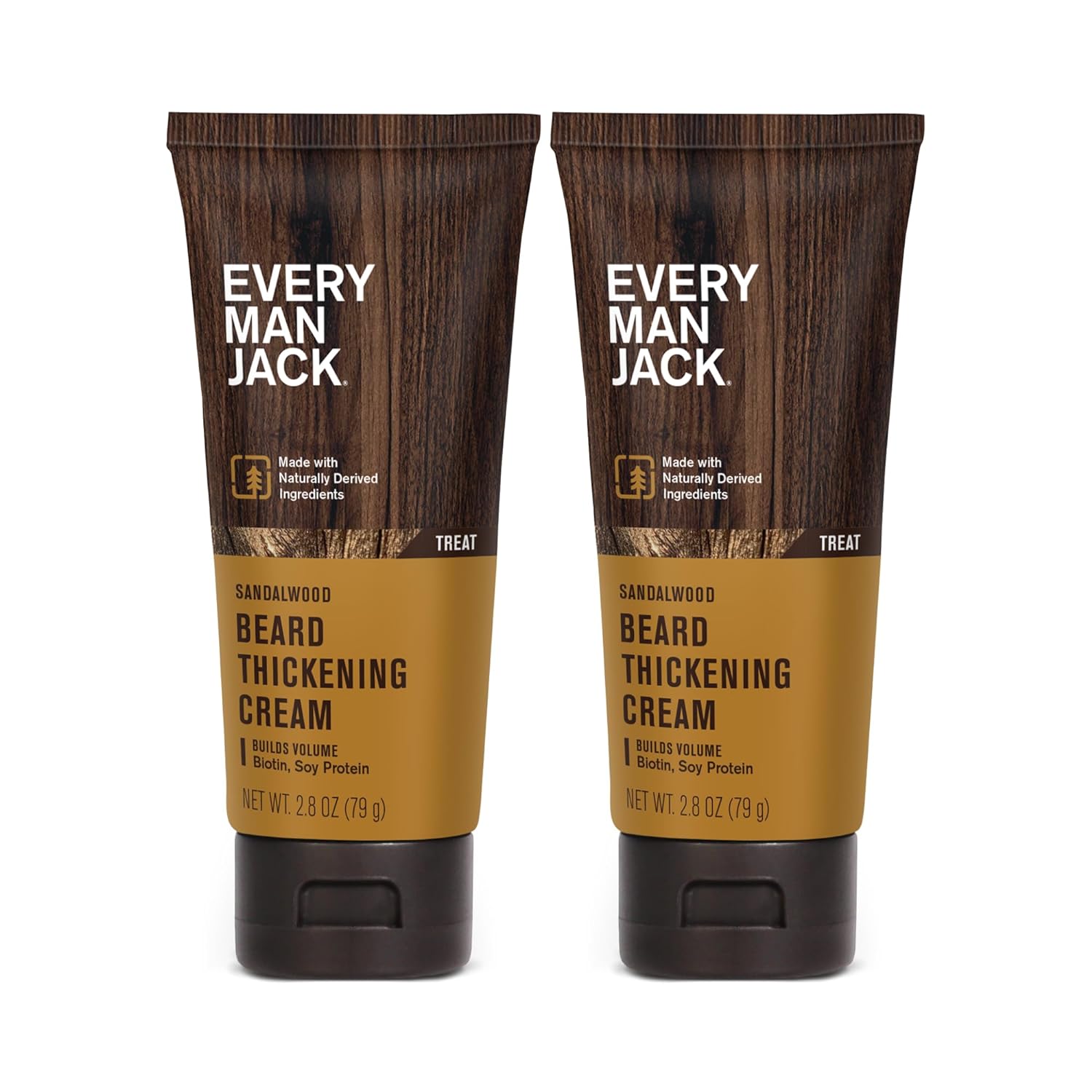 Every Man Jack Beard Thickening Cream - Strengthens, Thickens, Nourishes Beard - Light Sandalwood Scent - Made with Naturally Derived Ingredients like Biotin, Vitamin B6, Soy Protein - 2.8oz - 2 Pack
