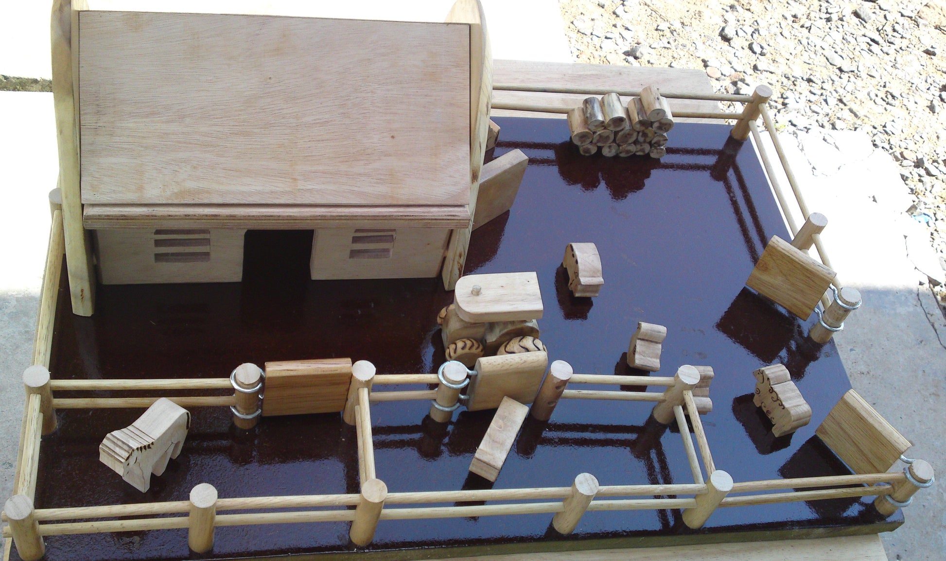 Looking for a Farm play set? look no more. This farm play set includes all the accessories for a pretend farm play, from the barn to tractor ( one) farm animals ( 8), wood log, stock yards and much more. the set has sturdy structure, beautiful finish. All toys are made of plantation timber using non toxic, child safe materials.