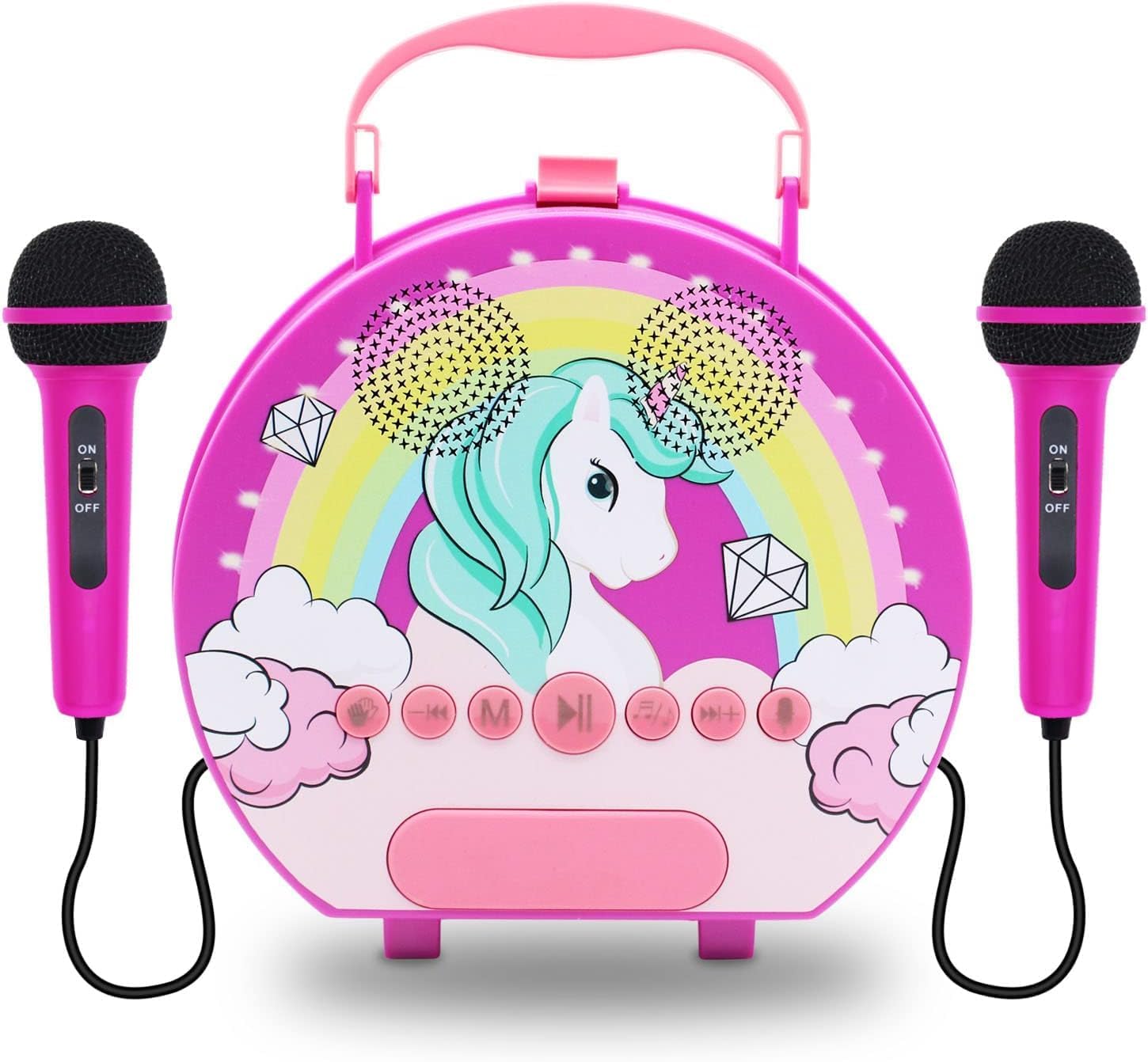 Gominimo Kids Portable Karaoke with Two Microphones (Round, Purple Unicorn)