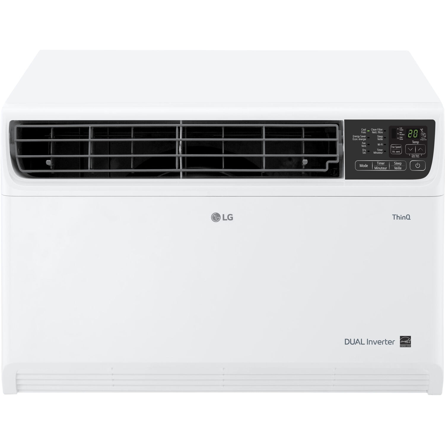 The LG Dual Inverter air conditioners are the best in cooling innovation. This ultra-quiet unit operates at 44 dB in sleep mode almost as quiet as a library. In addition the DUAL Inverter technology allows the unit to operate efficiently saving you as much as 35% on energy costs. Cool your home from anywhere using LG ThinQ technology to control your air conditioner with your phone or use with Amazon Alexa and Hey Google to have control with the sound of your voice. 4 cooling and fan speeds and a 24 hour timer allow you to create a cooling schedule to suit your needs. 4-way air deflection lets the flow of air be directed where it's needed most whether cooling dehumidifying or just circulating air. If there is a power outage the auto restart feature will automatically turn your unit back on when power is restored. Other features include an LCD remote control easy window installation kit removable (washable) filter and a check filter alert.