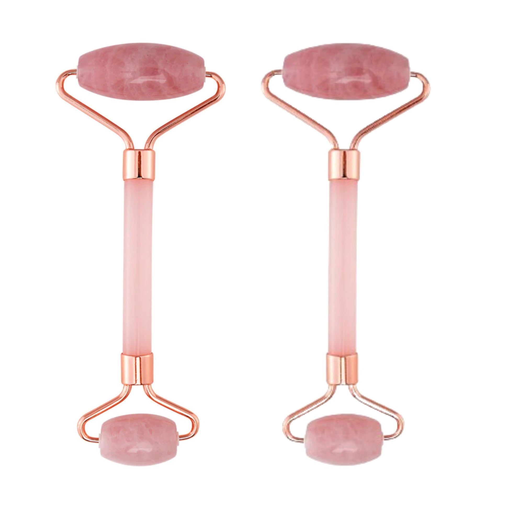 Unisex 2 Pack Rose Quartz Roller - Anti-Aging Face, Eye & Body Beauty Roller